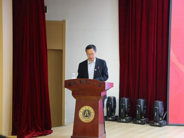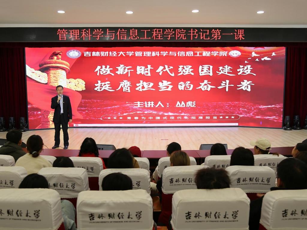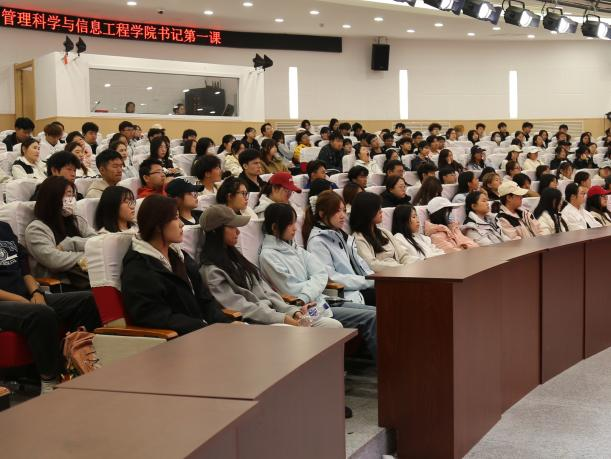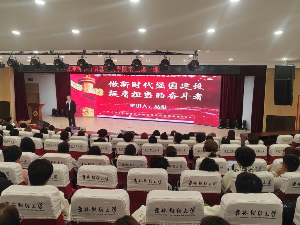 2025年10月11日,管理科学与信息工程学院党委书记丛彪在学院2025级新生入学教育大会上,以“做新时代强国建设挺膺担当的奋斗者”为题作主题报告,勉励新生坚定理想信念、勇担时代使命,努力成长为堪当民族复兴大任的高素质财经信息化人才。
