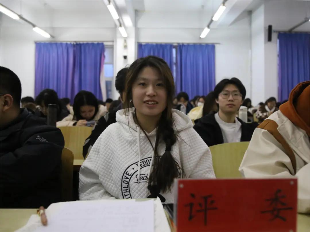 管信学院21级辩论队队长杨亮学长对比赛进行了点评。杨亮学长表示,双方对“发疯文学”到底是对现实的逃避还是反抗还可以进一步深入阐明。他提出,“如果反抗没有结果,是否还叫做反抗”也可以作为一个有力的反驳点。同时,他建议辩手们可以多搜集一些实例来支撑自己的论点。尽管这是同学们第一次进行正式比赛,但在如此紧张激烈的氛围中,各位辩手仍能从容面对,以其犀利的言辞和严密的逻辑,使整个赛场为之振奋,为观众呈现了一场视觉和听觉的盛宴。