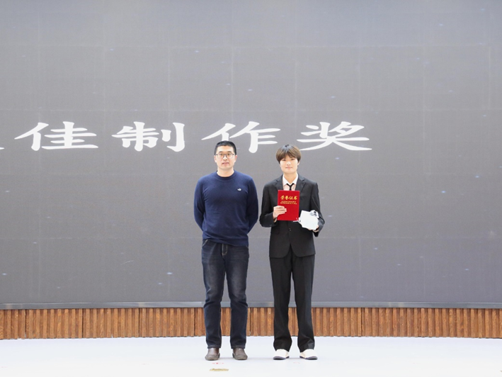 最后,于智龙老师对整场比赛做出了点评。首先,于智龙老师对大家的努力和付出以及认真的态度给予了肯定,并建议同学们在内容创作上可以更加注重创新,突破现有的模板,剧情设置上考虑更加成熟和丰富的内容,以吸引更广泛的观众群体。同时,老师提出了主题的推进需要更加严谨,让观众更容易理解故事背后的深层含义。此外提出在视频制作技术方面,拍摄手法、后期制作和画面调色等方面都有待进一步提升。最后,于智龙老师表达了对同学们的美好期望,希望同学们在未来的比赛中可以有更好的、更优秀的作品。