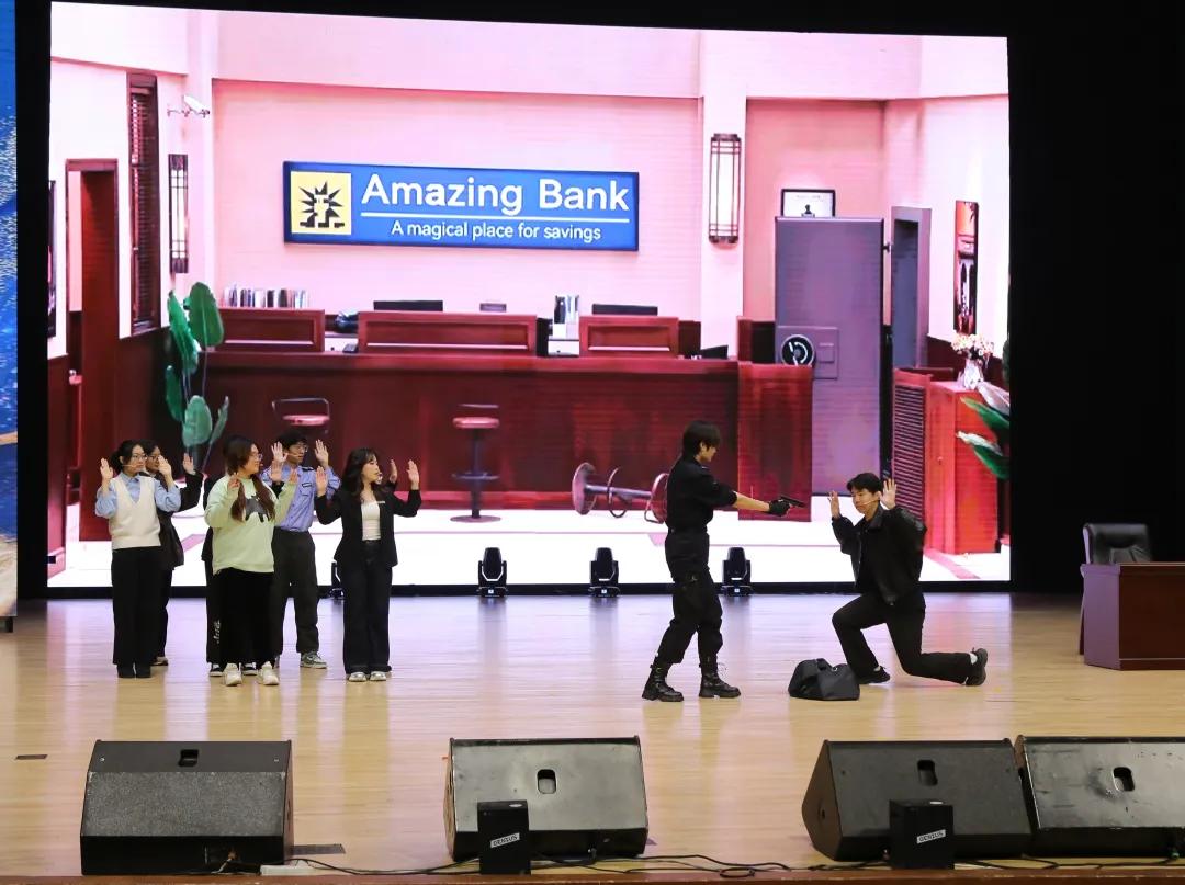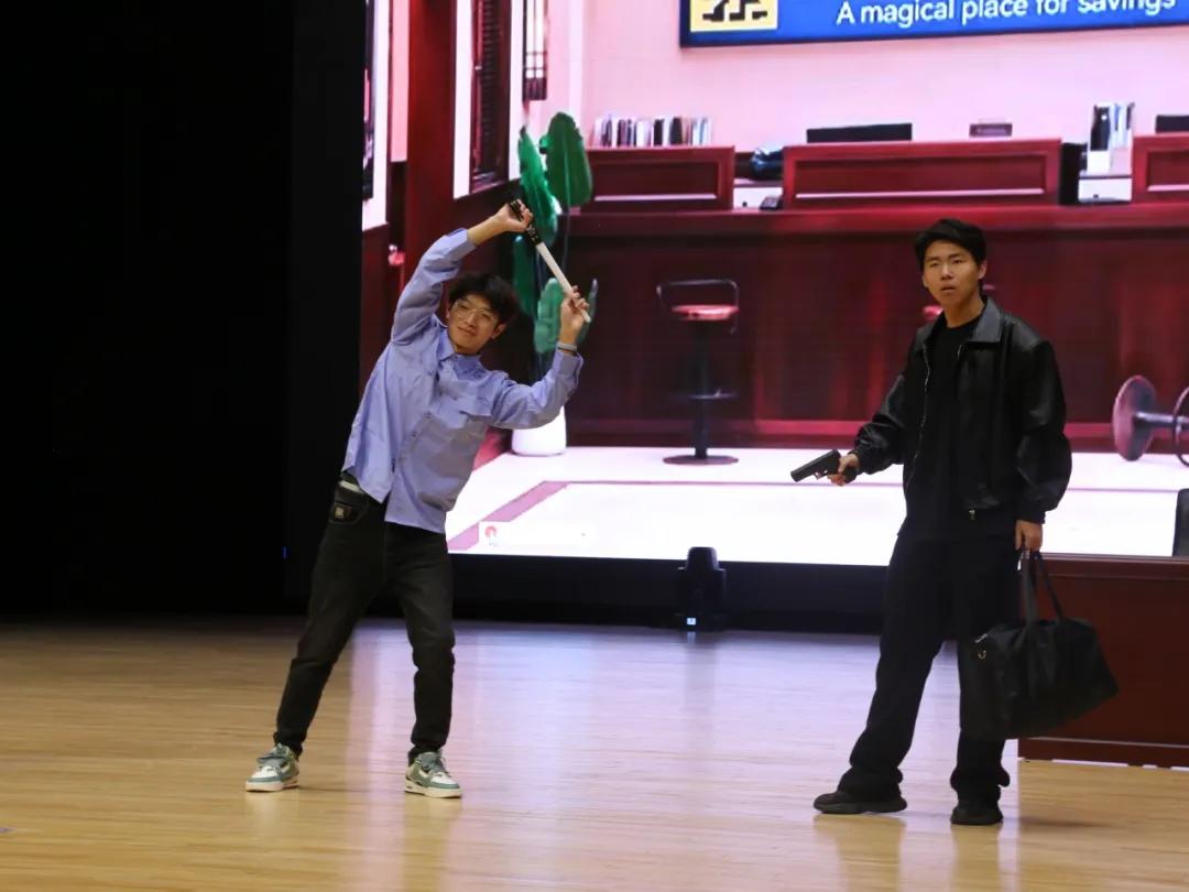 学生会社团部24级同学为大家带来小品《史上第一大劫案》